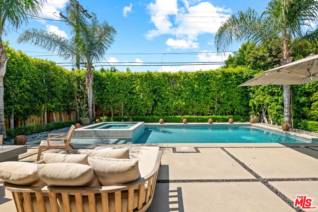 Architectural Masterpiece in Melrose Village. Welcome to this stunning modern villa in the heart of Melrose Village, where contemporary design meets luxurious living. This 5-bedroom, 5.5-bath architectural home offers an elegant blend of style and comfort, featuring spacious formal living and dining areas, a gourmet chef's kitchen with Miele appliances and sleek Pedini Italian cabinetry, and beautifully crafted oak floors throughout. The primary suite is a tranquil retreat with a luxe spa-like bath and generous closet space. The media room and guest suite provide flexible living options, perfect for entertaining or hosting guests. Step outside to your private pool and patio area ideal for California's year-round sunshine or head up to the expansive rooftop deck for unparalleled city views and the perfect spot to relax, dine, and entertain under the stars. Smart home features include a NEST system, security alarm, and cameras, offering convenience and peace of mind. This meticulously crafted home is the ultimate retreat for those seeking sophisticated urban living in one of LA's most desirable neighborhoods.